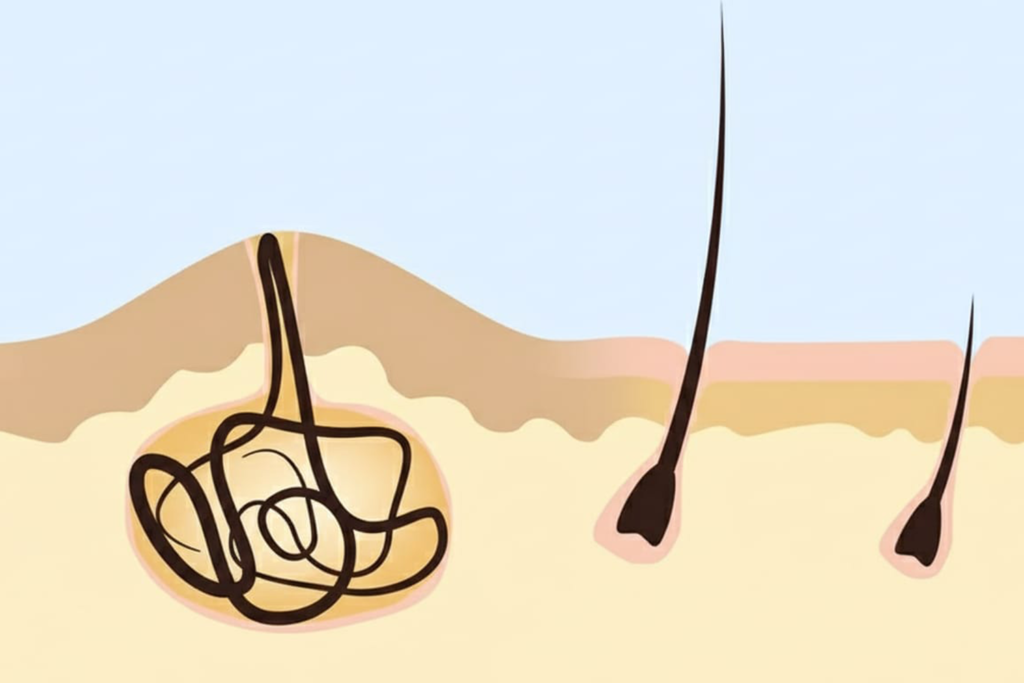 • Coarse or Curly Hair: More likely to poke back into the skin.