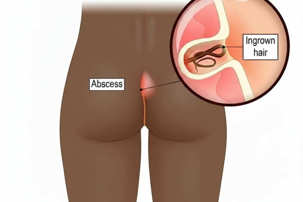 A Pilonidal Sinus (PNS) is a small tunnel or tract that develops under the skin at the top of the buttocks cleft (the sacrococcygeal area). Think of it as a stubborn, unwanted “pocket” that often becomes a hideout for hair, skin debris, and bacteria, leading to painful infections.
